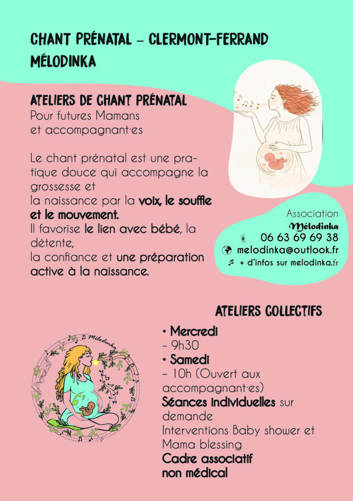 Dans la continuité du chant prénatal, l’association Mélodinka proposera prochainement :